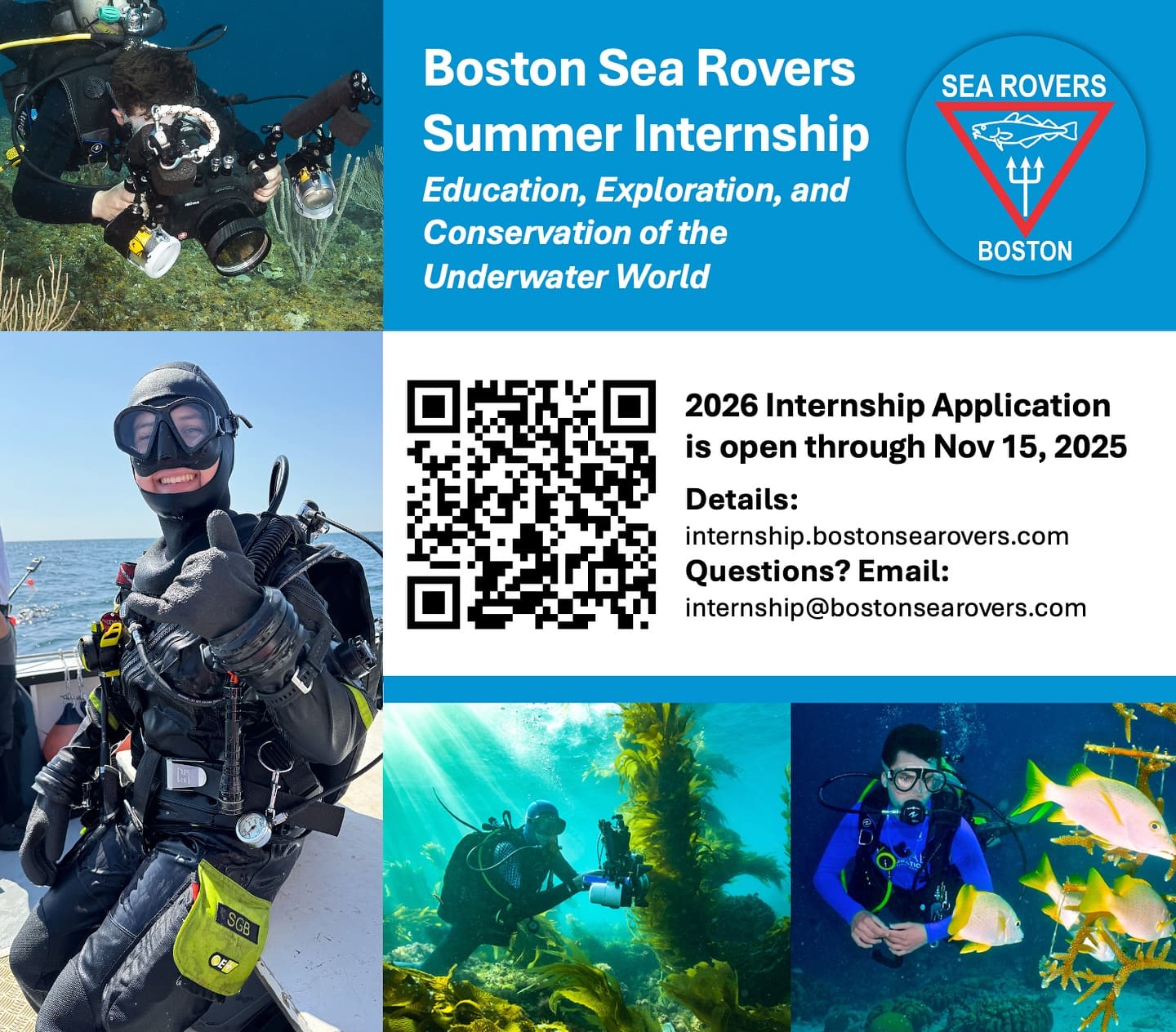 I’ve just kicked off my internship this week, so stay tuned! I’ll be regularly updating this blog with all my experiences, but I’ll also be posting on the BSR Internship instagram (@bostonsearoverintern) and my personal Instagram diving account (@sofiagb.diving). Feel free to follow along on whatever platform works best for you. Please also don’t hesitate to reach out and say hi!