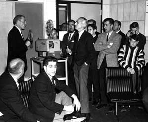Throughout the 1960’s, diving science and technology were progressing at a blinding pace, and it seemed like all of the important breakthroughs and discoveries throughout the underwater world were introduced first at a Sea Rover Clinic.  Dr. George Bond, the scientist who “invented and developed” the concept of saturation diving, first talked to civilians about his fantastic ideas at a Sea Rovers Clinic.  Jacques Cousteau first met Dr. Bond in Boston, and learned of his saturation diving experiments, and event that changed the world of diving.  In a few years, habitat projects such as ConShelf, Man-in-the-Sea, and SeaLab would be front page news – but news that had broke first at a Clinic.  For the remainder of the decade, and well into the 1970’s, leaders and designers of habitats and saturation projects throughout the world came to Boston to see, learn, and meet people at the Clinic.  Science and technology were but one of the major attractions of a Clinic, as every other aspect of diving and the ocean world were also covered with typical Rover finesse.  Underwater photographers and cinematographers have premiered more works at Sea Rover Clinics over the years than at any other dive show, and many of these image makers were themselves introduced to the diving public through the Rovers.  This description of the 1966 evening show was typical of the events throughout the decade.