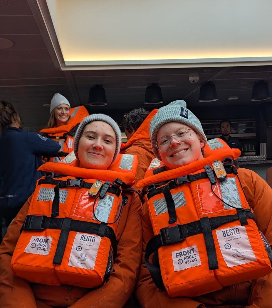 Our Expedition Leader, Chloe, gave a presentation about safety procedures on the Orelius, and then we all went back to our rooms to grab our lifevests and do a emergency disembarkment drill, where we walked the path we would take in case of an emergency where we’d have to board the lifeboats.