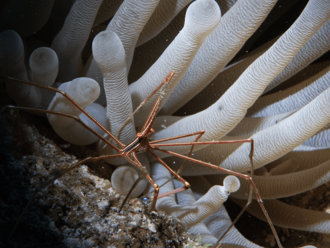 After a surface interval, I got back in with Jocelyn and Christine and went right back to the spot where the eel was, and he was still there. I was able to improve my previous eel shot. After the second dive I felt like I had improved my macro shots and had real subjects that were interesting to viewers. Instead of diving in the afternoon I edited my photos and learned some new techniques in Lightroom. I will admit, I also took a quick nap as the diving was catching up to me! For class tonight, I went to Todd’s super macro session. He gave some great tips on both regular macro and super macro. He is inspiring me to try using a 5 power diopter that is on demo later in the week. I submitted the 3 photos for the group critique tonight, the eel and pufferfish eye above and the arrow crab below. I got some decent feedback on how to improve them which I was so grateful for.