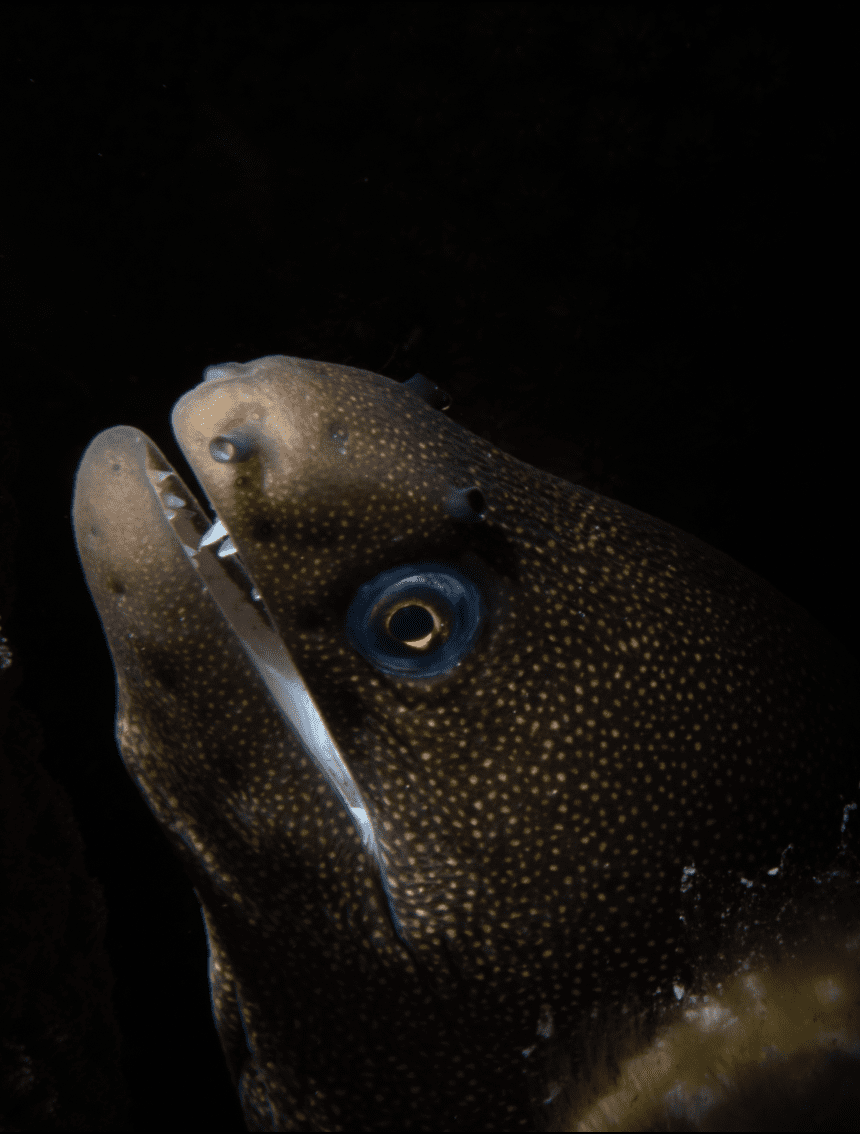 On the way back to the dock, during my safety stop, I found a very cooperative pufferfish (again) and was able to snag a shot of his eye! I was very excited about this successful dive.