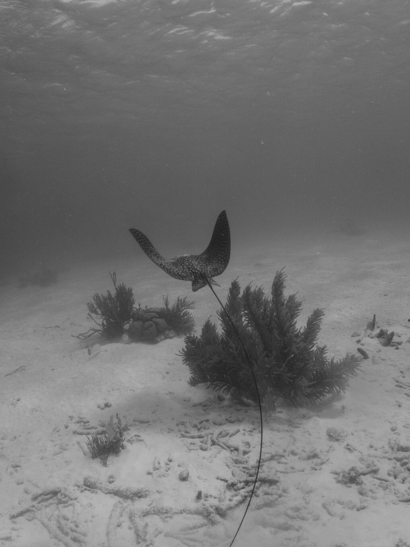 After dinner, I went to Berkeley Whites presentation on creative photography. My favorite part was when he explained how to paint with light. He would turn on his shutter, go ‘paint’ a wreck with light, and then turn off his light and swim back so he wasn’t in the shot. It created some really beautiful results, but takes a lot of practice. He also mentioned that when a photo has a pattern, it tends to look nice in black and white. So, I made my spotted eagle ray shot in black and white, and I do think I like it better.