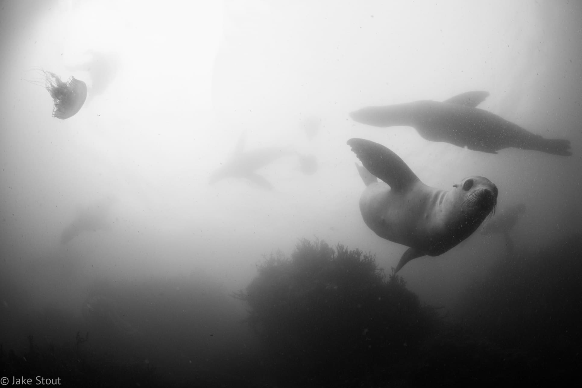 One day I did a thirty minute surface swim out to see the sea lion colony at the end of the wall. When I got there there were tons of sea lions all lying around. I swam up to the started making a lot of noises and blowing bubbles in the water and splashing around, ducked under the water come up a few feet away and did the same thing again. At this point about 20 young sea lions jumped into the water and started frantically swimming around me in circles. It was really breathtaking to watch them and how easily they glide through the water. The vis was really bad, only about five feet, so I tried to get some shots but mainly just took in the performance before me. At one point a huge bull male jumped in and swam right by me. It was about double the size of the young ones and had a large bump on its head which meant it’s a dominant male. It probably weighed in at around 500-600 lbs and was pretty intimidating. But at the same time he never bothered me so I felt safe. After about 80 minutes I began the long surface swim back and walked back to the shop to tell the story.