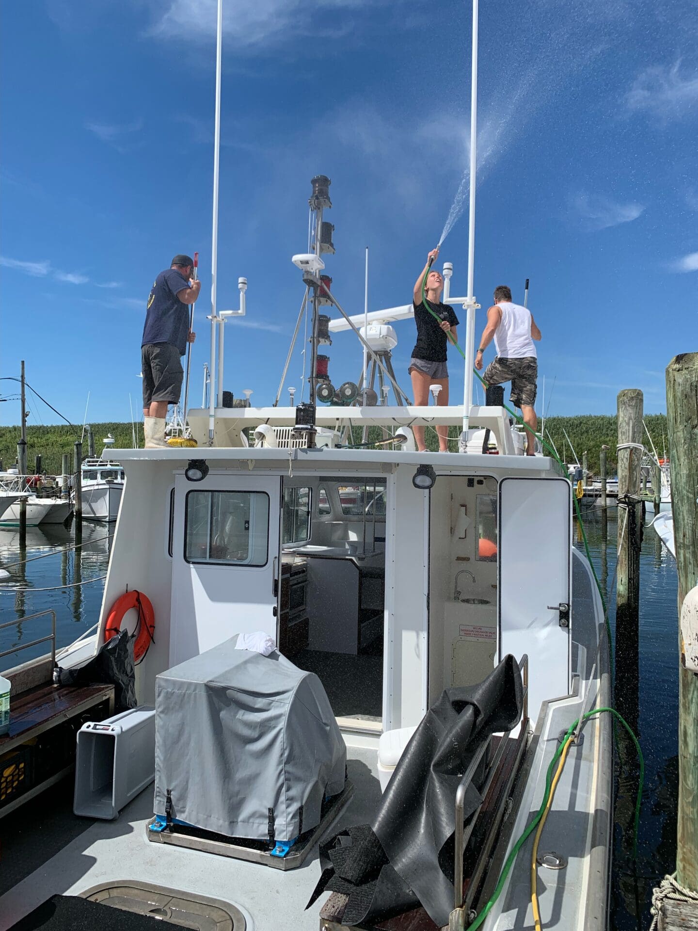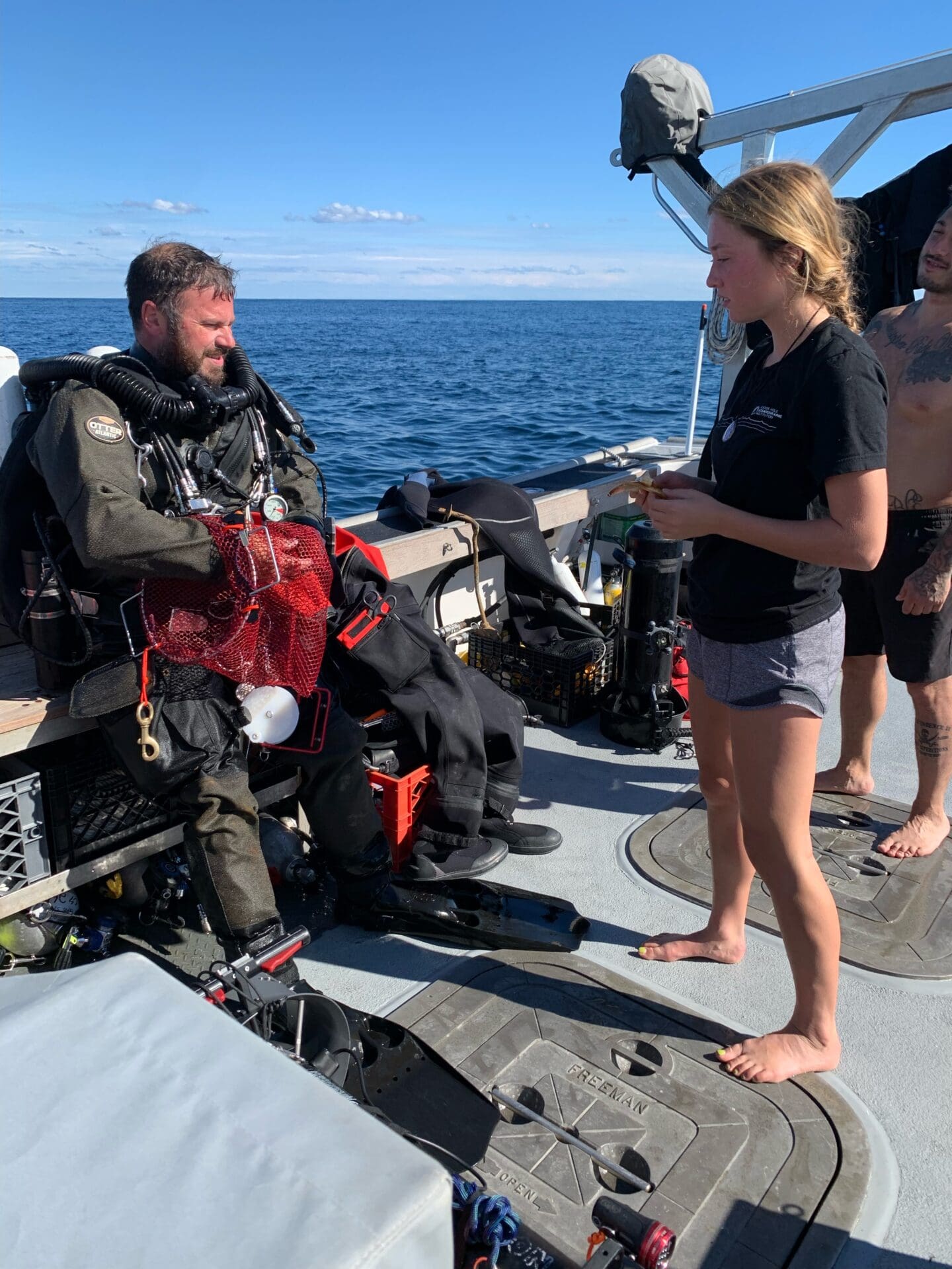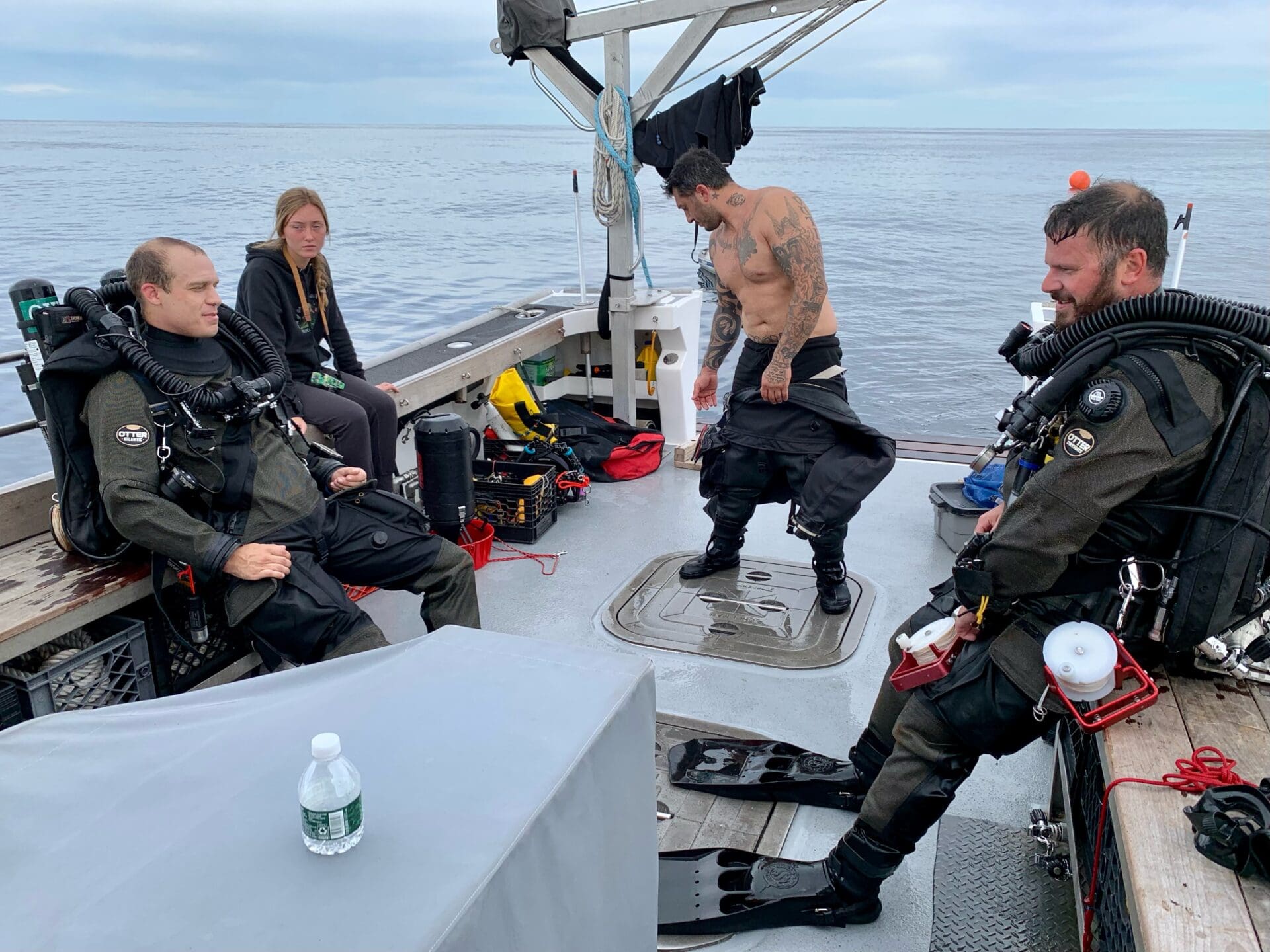 I helped load gear onto the boat and met everyone who would be diving. That was Rick Simon, Joe Maz, Joe (not the same one), Chris, another Chris but we called him Tattoo Steve. And then Jenn and I would be topside while they dove down past 200 feet. I brought my dive gear with me just in case I got to dive down to the safety stop, just for the experience.