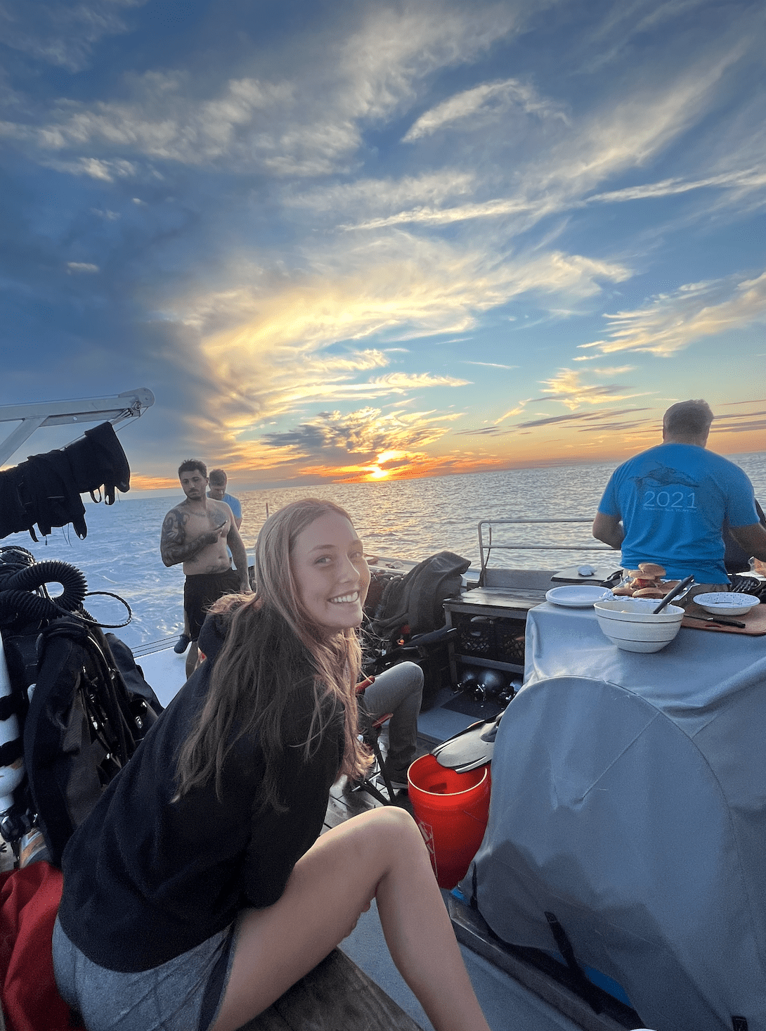 We all got dinner near the marina, and Joe treated me which was very nice. We will be driving through the night at a slow and steady pace to get to the first wreck by sunrise. That is 85 miles offshore, crazy! Each of us would take shifts being awake. This entailed sitting in the captain’s seat and making sure no boats were directly in our way, and that our autopilot heading stayed correct. I was lucky and got the 5-6am shift so I got to sleep through the night. Mine was also the last shift, so everyone was starting to wake up to get into dive gear, and Joe Maz was up to position us right over the wreck.