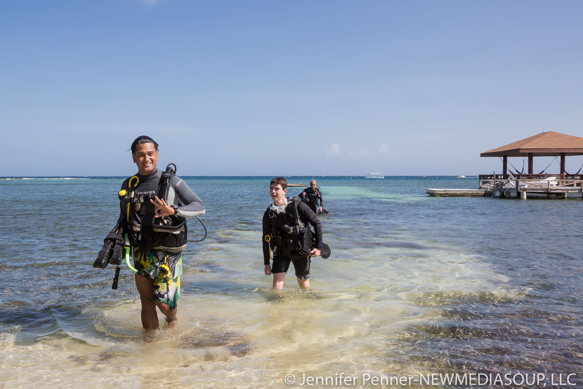 To complete my deep dive training I was helped by the dive shop instructor at Coco View. One morning we went out on a shore dive snorkeled out past the Prince Albert and dropped down to 70 fsw, swam along Newman’s wall down to the the edge of the wall which was exactly 103 fsw. The instructor brought down a plastic water bottle that was filled with air that had compressed as we went down. He than added a little bit of air to it to see how it would expand as we ascended. He also had a little card with different colors on it to show how at 100 ft red and yellow didn’t exist they looked more like mild greens. This is due to the fact that as you descend in depth colors gradually subtract till you’re left with only blues. He then shined a flashlight on the card revealing the true colors. The last thing that we did at 100 fsw was open an egg and see how the pressure had changed it, but it really hadn’t because it has liquid and not gas in it. As we safely ascended we headed along the back side of Newman’s wall looking at the marine life we found another green moray this one about 4 ft. I found a sea biscuit, which is an echinoderm related to sand dollars. As we were swimming back along Newman’s Wall we spotted three spotted eagle rays! They flew effortlessly through the water it seemed like they weren’t waving at all but in reality they were speeding by us with the slowest movements and short flicks of their wings. It was an amazing sight to see. We headed back along the wall, did our safety stop and surfaced on the beach. I had completed my advanced training.