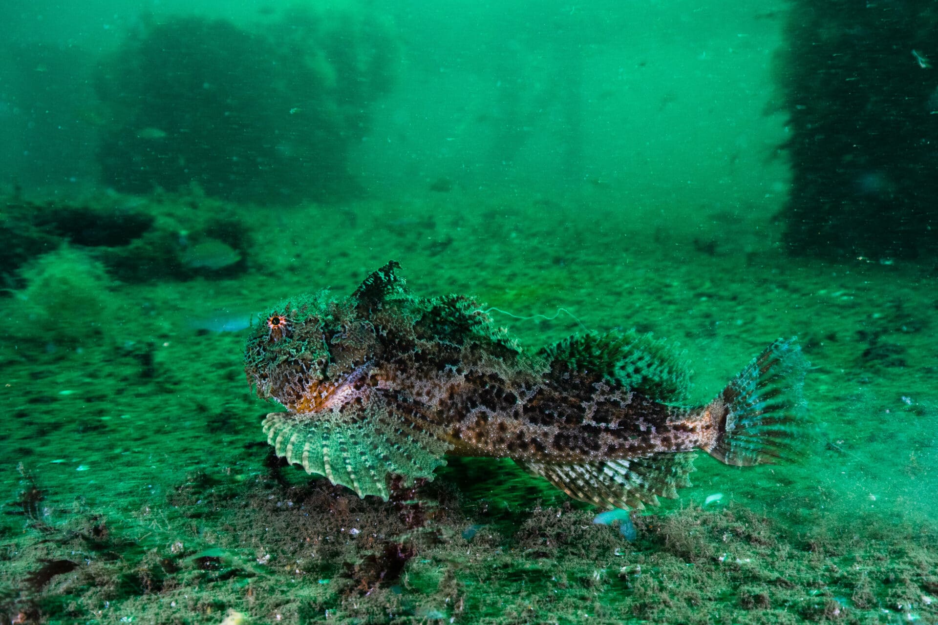 On our second dive we followed a similar dive plan, however when we neared the break, my dive buddy Kim took me inside the wreck. We descended down the massive opening into the cargo hold, coming just to the other side of the break where we had been on the previous dive. After we ascended back up to the top of the deck, I spotted a massive scorpionfish, and chased it around the wreck until we had to go up.