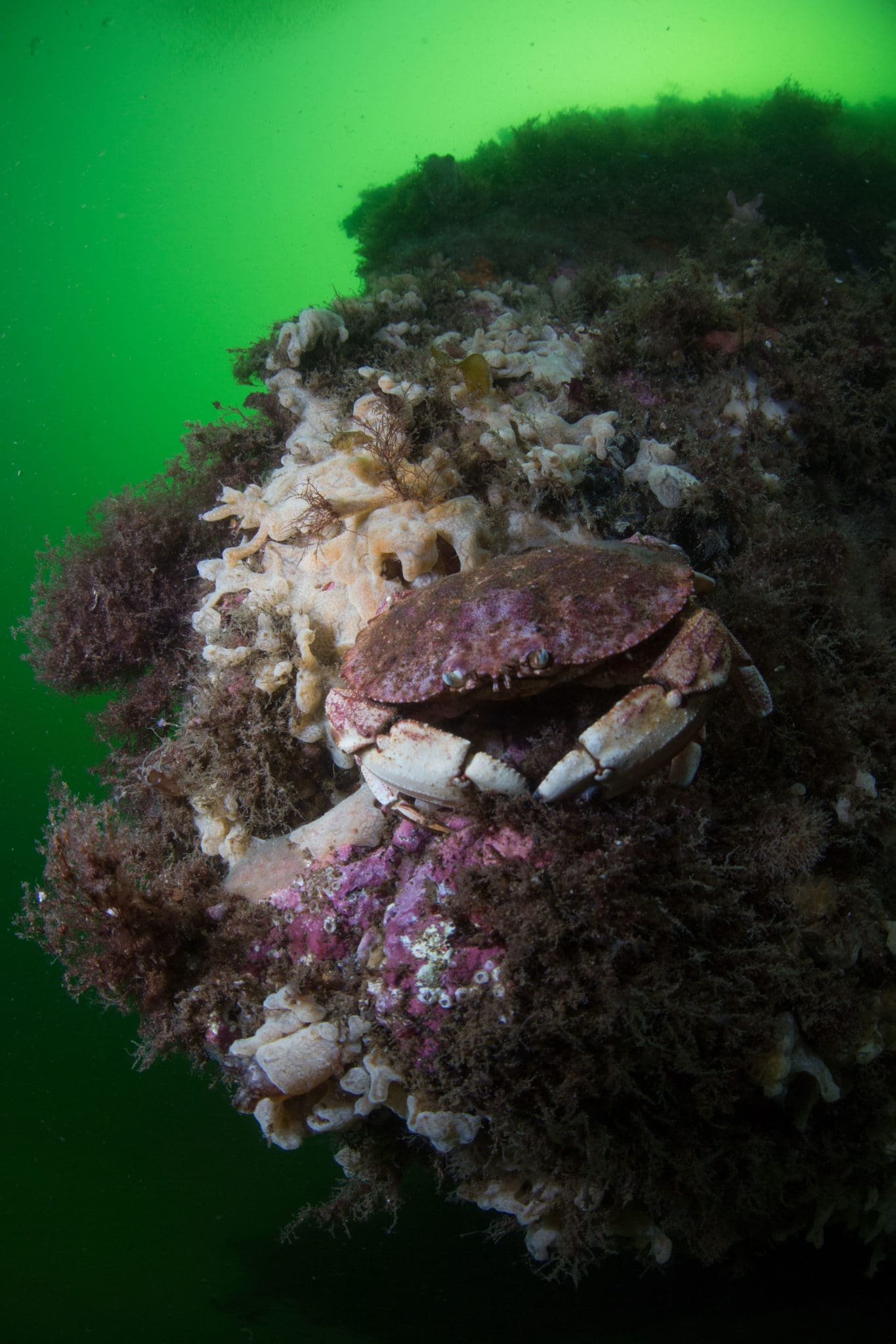 Back in New England I went diving with Sea Rover Andy Martinez, who literally wrote the book on marine life of the North Atlantic! Andy is a great photographer and a a diving legend in New England. We went to a familiar site: Folly Cove on Cape Ann. As we waded into the water at high tide the sun was beating down, I don’t think I’ve ever wanted to hit a thermocline more. Andy pointed out a northern red anemone that he has frequently visited over the years. The vis was only about five to eight feet and we didn’t see much life but it was an honor to dive with Andy!