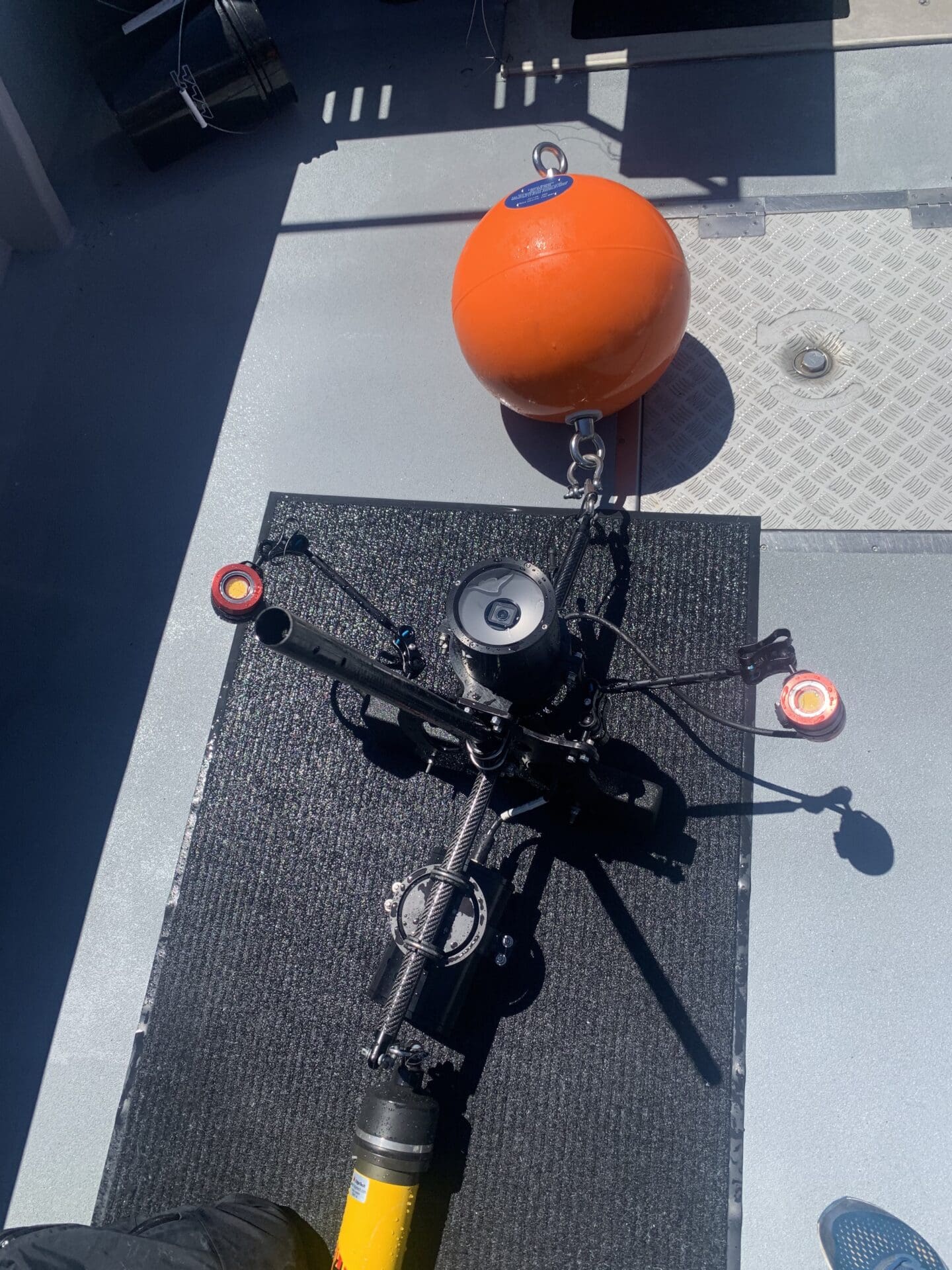 The next morning, we tested Lauren’s new underwater camera technology that she had specially developed for her phd project. These underwater cameras, called BRUVS, can be dropped deep into the ocean. Equipped with a bait box, light, and a continually running GOPRO camera, they monitor what comes to check out the bait far underwater, that we may not see on the surface.