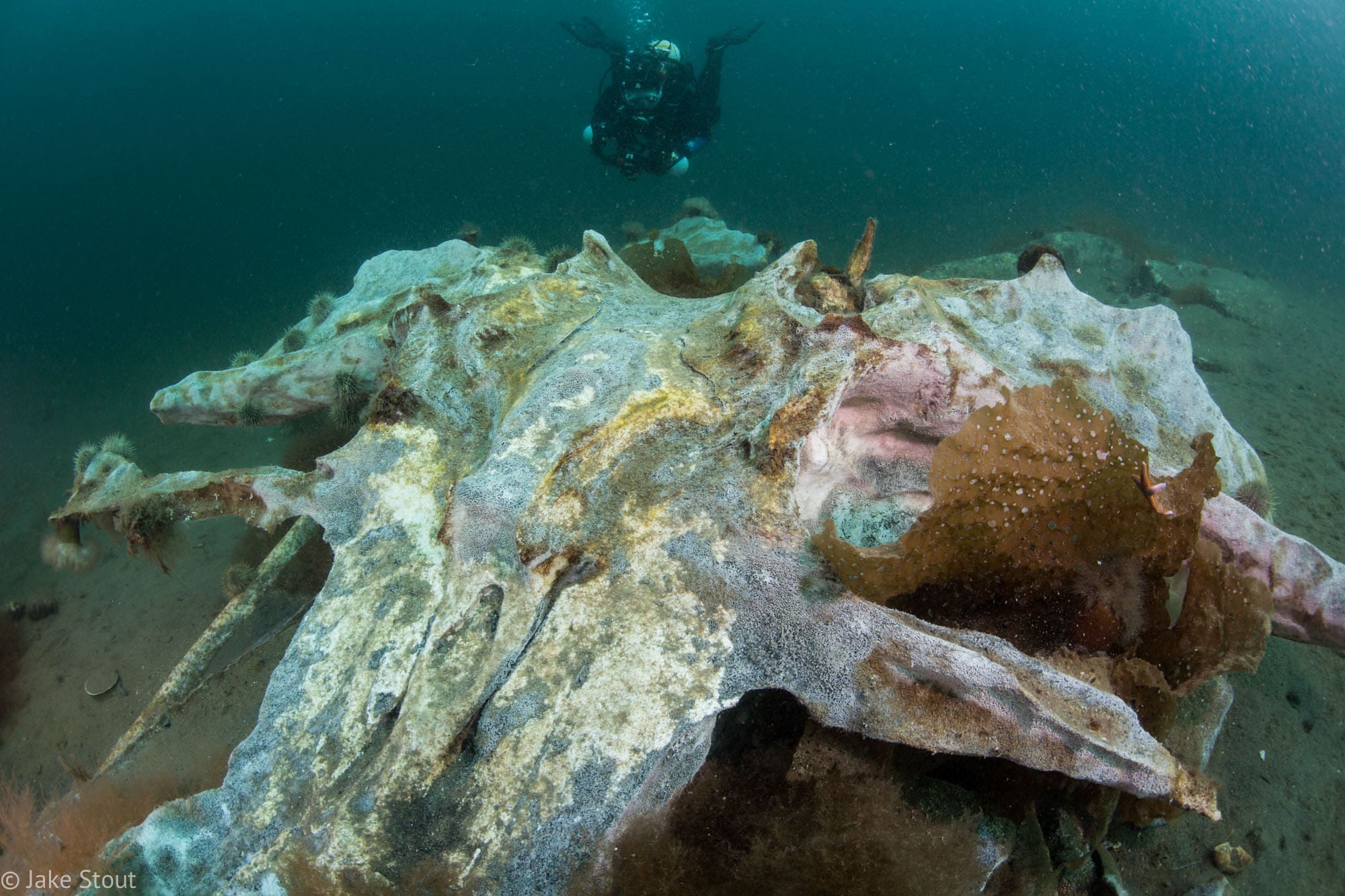 On my last day in Newfoundland we headed up to the interestingly named town of Dildo, to dive on whale skeletons. The skeletons are remnants of old whaling factories. It was the only shore dive that I did in Newfoundland and it is one of the most unique dives. We walked into the water over the ankle breaker rocks and algae, did a short surface swim then dropped down. Right away in 20 FSW we found the first skeleton and more after. There was also a red fish swimming around the skeleton. This dive site is very silty and the slightest movement hitting the bottom will stir up dust, so perfect buoyancy was key. This dive was also the coldest I’ve ever done at 32 degrees. But in my DUI drysuit I was nice and warm. Unfortunately the water was so cold that my regulator started to free flow and we ended the dive. Even though it was a short dive it was a great dive and I was kind of happy that I went through a free flow and knew what to do and didn’t panic.