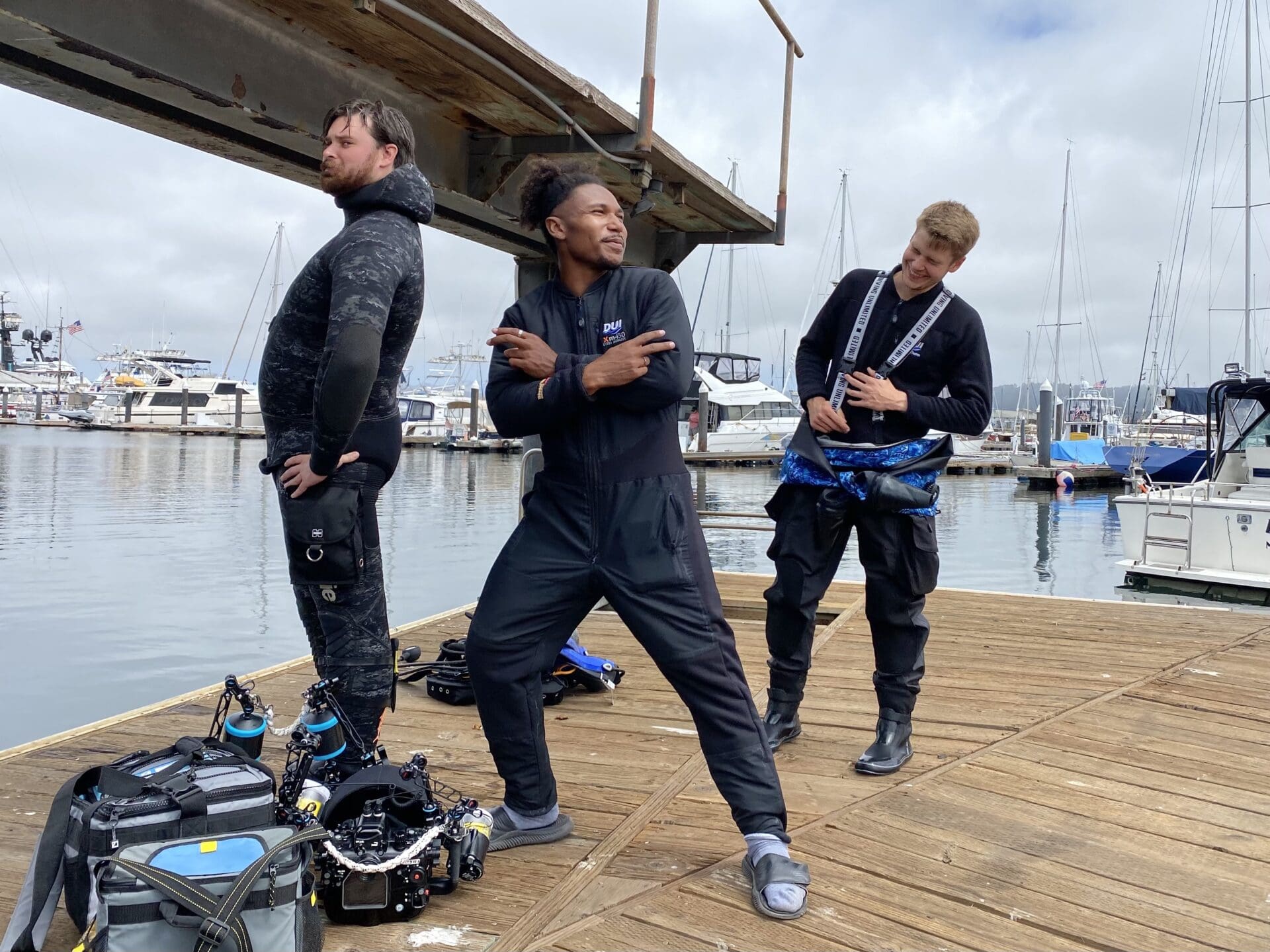 My second day in Monterey, Jamil and I got a chance to dive off backscatter owner Berkley White’s boat! I took my wide-angle camera setup and we went out to the end of the breakwater, jumping in the water with the massive sea lion colony that resides at the end of the pier. On the dive, the visibility wasn’t good enough to get any close up stills of the sea lions, so I realized I had to find something a little more interesting to focus on. I spent the rest of the dive looking for cool foreground subjects that I could use with a sea lion silhouette in the background. This strategy worked, and I managed to get this cool photo of the sea lions swimming by!