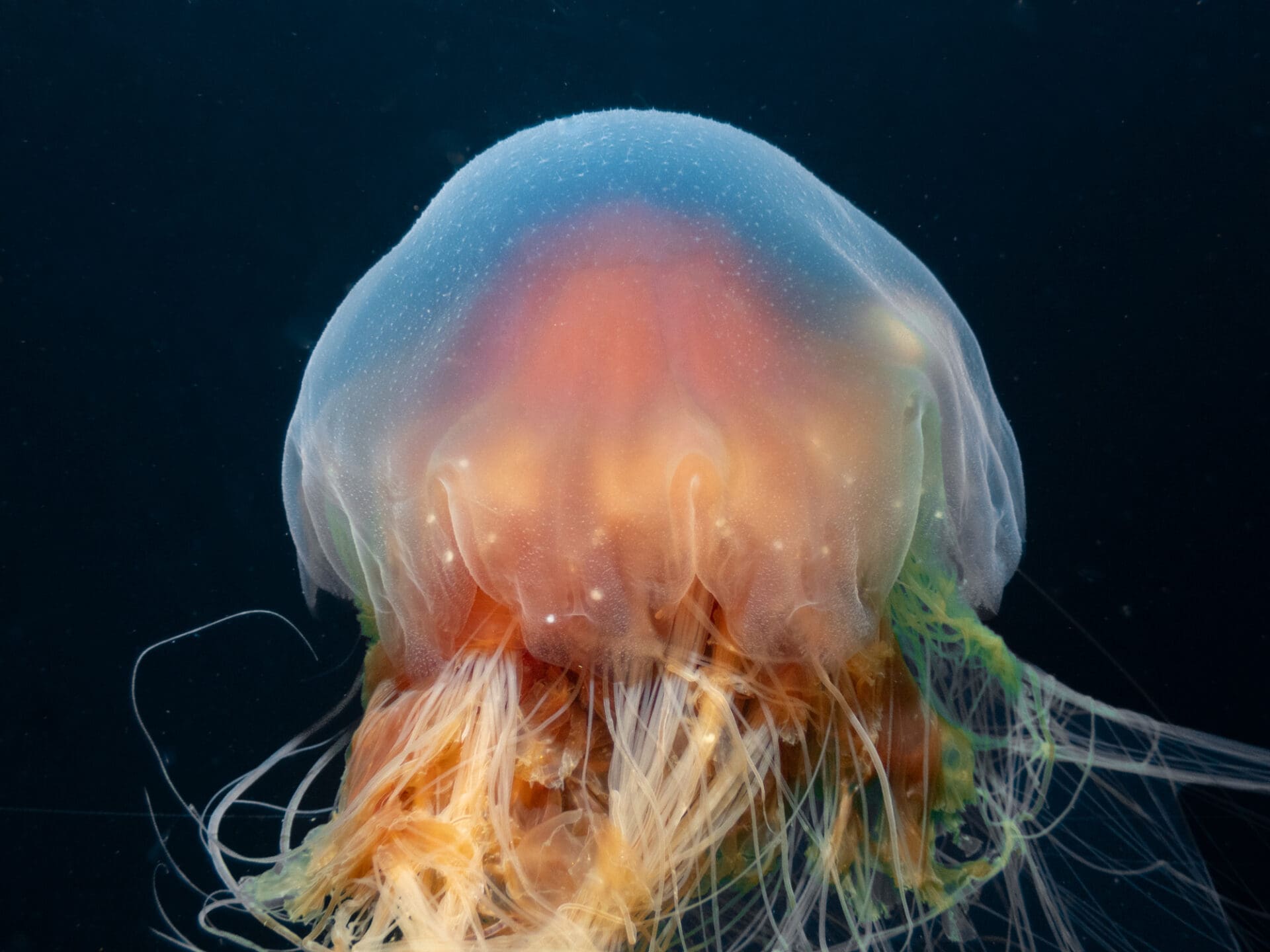 On the way back to the mooring line at the stern, we spotted ten or fifteen Lion’s Mane Jellies that had gotten tangled in the railings of the Lord Strathcona. As we swam, Glenn and I also followed Rick through several swim-throughs on the deck of the ship. It was really breathtaking to be surrounded in a tunnel of anemones and be able to look around and see ladders, portholes, and operating panels that have become part of the ocean ecosystem.