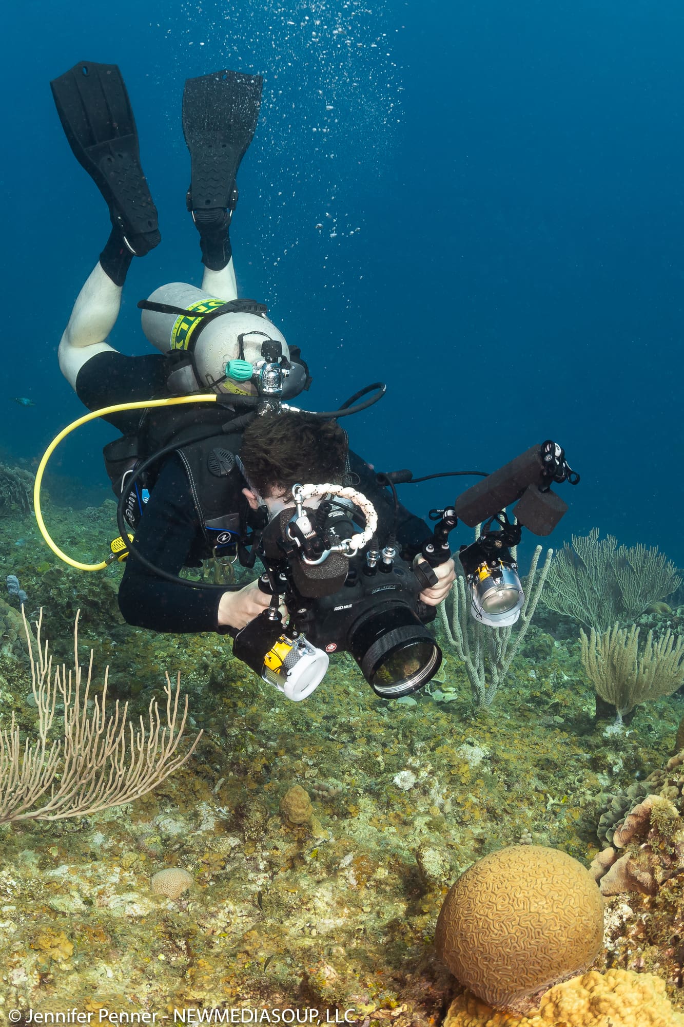 While waiting in the Miami airport, eating my delicious airport chinese food, Sea Rover Woody Tinsley walked up, also on his way to Roatan for the Kids Sea Camp, while I was on my way to The Digital Shootout. It’s a week long photography competition and is hailed as the world’s best learning experience for underwater photography. This year’s shootout was held at Coco View a lush tropical resort with plenty of diving. The event is hosted by Backscatter Photo and Video the world’s largest underwater camera retailer, founded by Associate Sea Rover, 2017 Master of Ceremonies, and Diver of the Year, Berkley White. His team and others from Nauticam, Olympus and Light and Motion were on hand with demo gear and and they could help you with anything you wanted. I’ve had years of experience in photography but none with an actual underwater camera rig, and I was ready for some learning!