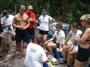 After my dive Josh Woody and Boz did their first open water dive in the spring. After all the days dives were done we headed back to the dive shop to get fills and do a debriefing meeting. The next stop was to a Friends of Wikiva meeting. Here one of Terrence’s neice presented her State winning science fair project on water flow in the springs. . At the meeting we met up with another member of the Cambrain teem, Carl Shreves. We all went out to dinner and then we called it a day.