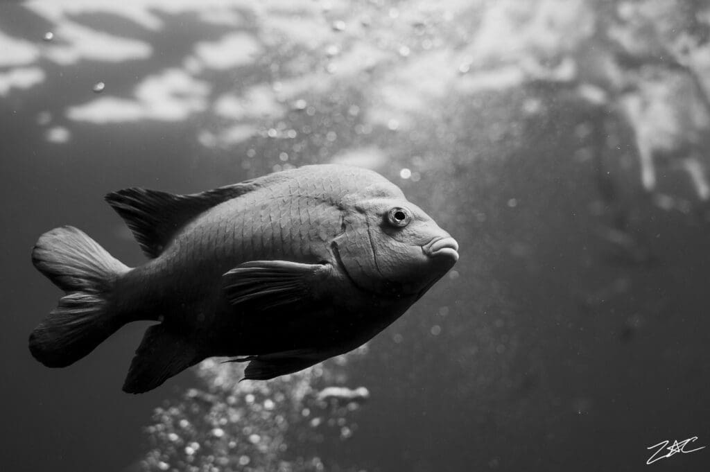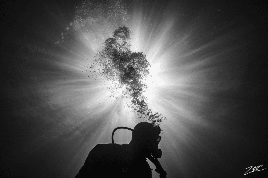 While I want to pursue Marine Engineering, I also have a passion for photography. I started taking photos five years ago, originally just shooting for my high school’s sports teams. I have been taking underwater photos for just about three years now, and it is one of my favorite excuses to hop in the water. I primarily shoot in black and white. I love to capture the odd angles and under-recognized things (I have over 2000 photos of bubbles in motion).